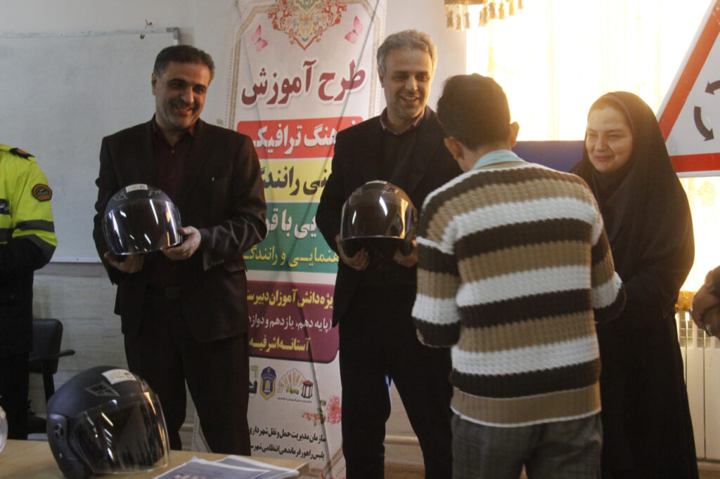 آزمون طرح آموزش فرهنگ ترافیکی و ایمنی رانندگی، با حضور عبدالحسین داداشی؛ شهردار آستانهاشرفیه، حبیب رمضانی؛ معاونت سیاسی، امنیتی و اجتماعی فرمانداری شهرستان، مجتبی شیرزاد رادجلالی؛ رییس سازمان مدیریت حملونقل شهرداری و سرگرد بهزاد دوهندو؛ رییس پلیس راهنمایی و رانندگی فرماندهی انتظامی شهرستان در مدرسه شهید رجایی آستانهاشرفیه برگزار و در پایان ضمن اخذ آزمون کتبی در راستای سنجش سطح آشنایی دانشآموزان با قوانین، به قید قرعه به ده نفر از دانشآموزان، با هدف افزایش ایمنی و توجه به سلامت راکبان موتورسیکلت، ترویج و نهادینه شدن فرهنگ استفاده از کلاه استاندارد و کاهش خطرات ناشی از حوادث ترافیکی، “کلاه کاسکت” اهدا شد.