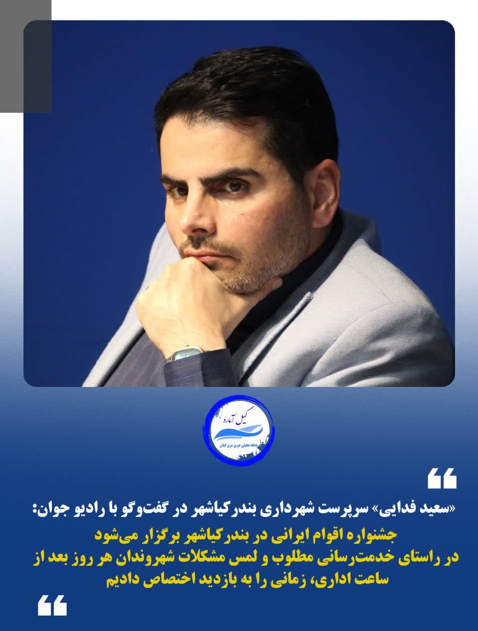گیل آمارد: «سعید فدایی» سرپرست شهرداری بندرکیاشهر طی مصاحبهای با شبکه رادیویی «رادیو جوان» با بیان اینکه جشنواره اقوام ایرانی در بندرکیاشهر اجرا میشود، گفت: در ابتدا حضور بنده در مدیریت شهری جشنوارهای در این شهر برگزار کردیم انتظاری که ما داشتیم فراتر از آن انتظار مردم حضور داشتند ما دنبال این هستیم، جشنواره یا نمایشگاه اقوام ایرانی را در نوروز اجرا کنیم و این موضوع به توسعه گردشگری کمک زیادی خواهد کرد.