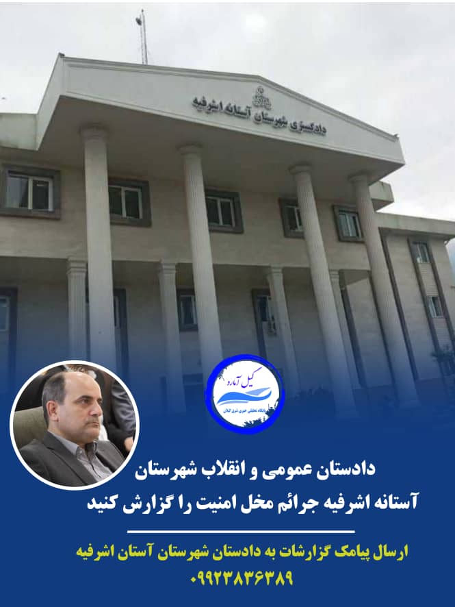 روابط عمومی دادگستری شهرستان آستانه اشرفیه طی اطلاعیهای شماره 09923836389 اطلاعرسانی پیامکی دادستان عمومی و انقلاب شهرستان آستانه اشرفیه در مورد جرائم مخل امنیت شهرستان ، ترک فعل مسئولین ، جرائم مهم و حقوق عامه و … اعلام کرد.